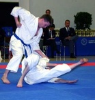 KARATE NI SENTE NASHI Karate on erittäin monipuolinen urheilu,- kamppailu- ja taistelulaji. Karatea harrastaessa on saanut monenlaisia etuja jo vuosisatoja. Nämä edut ovat edelleen samat ja sinun - jos niin haluat. Karaten luonne on vartalon liikkuvuutta kaikkiin suuntiin kehittävää. Se on vastakohta esim. melonnalle, jossa pääpaino on käsissä, tai pituushypylle jossa pääpaino jaloissa. Vartalon tasapuolinen kehitys on yksi karaten eduista. Karatekatan suorittamiseen tarvitaan yleensä minuutti tai kaksi – vähemmänkin kun harjoitellaan useampia vuosia. Liikkeet tulevat nopeammiksi ja harjoitukset voimakkaammiksi ja voidaan saavuttaa tehokasta harjoitusta lyhyessä ajassa. Karate on paras mahdollinen harjoitusmuoto ihmisille joilla ei ole “yhtään aikaa”. Lyhyt vaadittava aika on toinen karaten eduista. Mitään muuta lajia, esim. jääkiekkoa, jalkapalloa, judoa, tai hevospooloa, ei voi harrastaa milloin ja missä tahansa niin helposti kuin karatea. Useimmat urheilulajit vaativat suuren tilan, välineitä tai harjoituskumppanin. Tässä mielessä karate on mitä sopeutuvin; ei tarvita määrättyä tilaa tai aluetta, ei välineitä, ei edes kumppania – silti voi täysipainoisesti harjoitella kotona, puutarhassa, parvekkeella, hotellihuoneessa, eteisessä – missä ja milloin tahansa kun tuntee halua harjoitteluun. Sopeutuvaisuus on kolmas karaten eduista. Useimmissa urheilulajeissa harjoitus joka on sopiva miehille ei ole sopiva naisille. Samoin harjoitus terveille nuorille miehille on liian voimakasta vanhemmille ihmisille tai lapsille. Karatea voi harjoitella fyysisesti heikot, naiset, lapset ja vanhukset – jokainen voi sovittaa harjoittelun itselleen sopivaksi, jokainen harjoittelujakso voi olla minuutin tai parin pituinen - harjoittelun määrää ja rasittavuutta voidaan yksilöllisesti säädellä. Karatea voidaan harjoitella yksilöllisesti ryhmässäkin. Tämä on neljäs karaten eduista. Karate koostuu pääasiassa, vaikkakin kaatotekniikoita on, erilaisista isku-, potku- ja työntötekniikoista. Tekniikat ovat nopeita ja sallivat tehokkaat hämäykset. Puolustus- ja hyökkäysyhdistelmät suoritetaan samanaikaisesti jolloin heikommilla yksilöillä on tarvittava voima hallita voimakkaampi vastustaja. Karaten ansiot itsepuolustuksessa ovat; ei tarvita aseita, vanhat ja heikot voivat käyttää sitä ja itseään voi puolustaa vähemmilläkin voimavaroilla. Nämä ominaisuudet yhdessä tekevät karatesta tehokkaan itsepuolustuslajin. Tämä on viides karaten eduista. Syventyminen karateliikkeiden ja tekniikoiden oppimiseen johtaa, paitsi fyysisen kunnon kohoamiseen, myös vääjäämättä merkittävään henkiseen kehitykseen. Parempi itsetunto, parempi itseluottamus, esiintymis- ja ilmaisutaitojen kehittyminen, paremmat sosiaaliset taidot, paineensietokyvyn parantaminen yhdistettynä kohteliaisuuteen ja empaattisuuteen antavat sisältöä koko elämään. Mahdollisuus “sivutuotteena” henkiseen kehitykseen on kuudes karaten monista eduista. Karate on myös tänä päivänä todellista huippu-urheilua. Jos taitoa ja halua löytyy MM-mitaleita ja tulevaisuudessa myös Olympiamitaleita on riittävästi jaossa. |