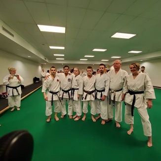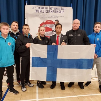 ![]() Osa Suomen joukkueesta yhdessä Shihan Kyle Funakoshin kanssa |