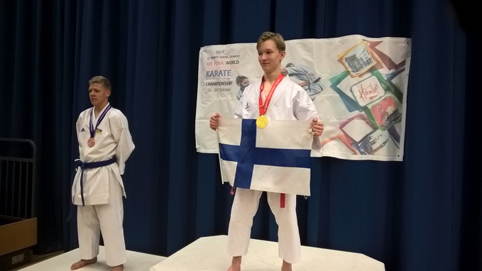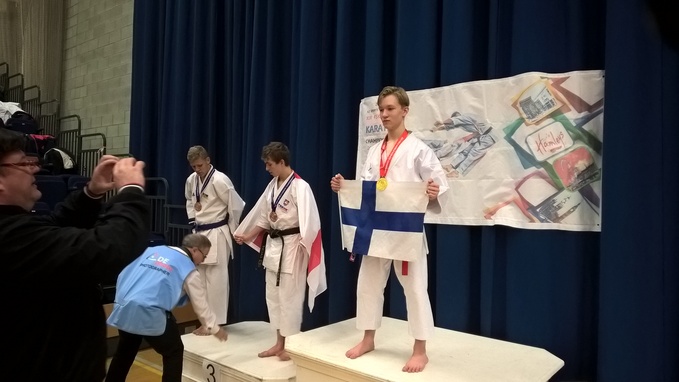 Ja lauantai alkoi kisojen virallisilla avajaisilla, jonka jälkeen alkoivat 11-17 v kisat. Ja Julius Nyholm sitten räjäytti potin voittamalla kultaa katassa Sipooseen.